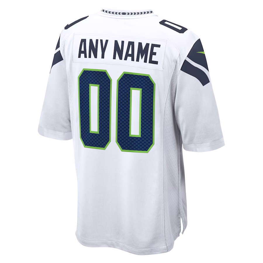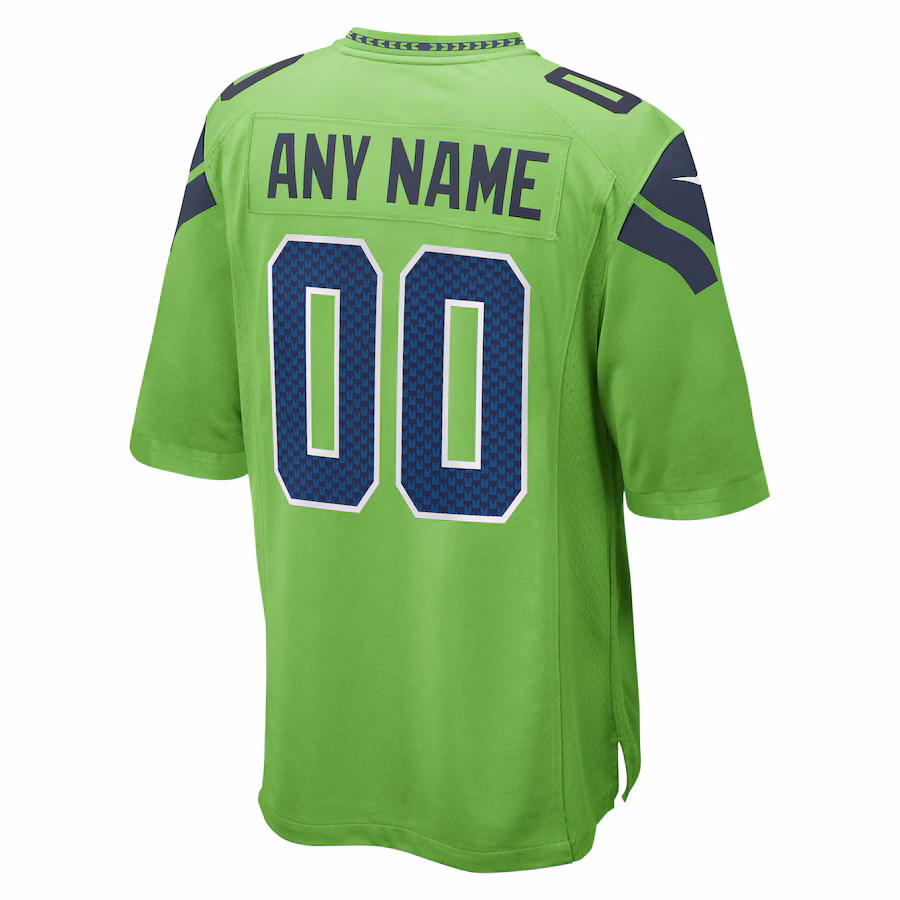 We want fans to celebrate their fandom by customizing and personalizing certain products. For these customizable products, including jerseys, we invite customers to tell us how they would like their preferred name or other text to appear by typing that text into the field indicated. However, just because a customer is able to type proposed customization text into the field and is able to complete the order through the website, not all proposed customization text will be accepted. Please note, We may reject and cancel any customization order for any reason, including for messages that are deemed offensive or inappropriate. Capture your team's distinct identity when you grab this Seattle Seahawks Custom Game Jersey from Nike. It features classic Seattle Seahawks graphics to show who you support. Before the next NFL game, grab this incredible jersey so everyone knows you're a devoted fan.